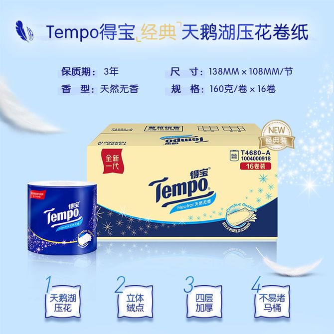 得宝 经典无香有芯卷纸4层加厚160克16卷 天鹅湖有芯卷筒纸 纸巾厚实 可溶于水 经典无香有芯卷纸4层加厚160克16卷(新旧包装随机发) 兑换价格 2600 里程 会员卡别 终身白金卡 白金卡 金卡 银卡 普通卡 儿童卡 服务 由 广西北部湾网络科技有限公司 发货并提供售后 包装数量: 箱 购买数量: 件 库存件 配送地址: 立即购买 加入购物车 成功添加到购物车 关闭 购物车共有 种商品 总金额为: