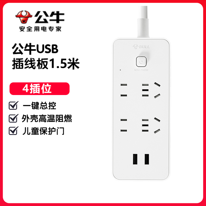 公牛(BULL) USB插座1.5m多用插排外壳高温阻燃USB插线板一键总控电源拖线板 一键总控 自动分流 五重保护 外壳高温阻燃 儿童保护门 兑换价格 2600 里程 会员卡别 终身白金卡 白金卡 金卡 银卡 普通卡 儿童卡 服务 由 广西桂福礼供应链管理有限公司 发货并提供售后 插排线: 有线 插位: 4插位 购买数量: 件 库存件 配送地址: 立即购买 加入购物车 成功添加到购物车 关闭 购物车共有 种商品 总金额为: 组合销售 产品介绍 产品规格 售后服务 产品咨询 发现好货 小米 多功能 3孔3USB插口 2A快充 防儿童使用安全设计插口电源插线板 白色 3000 里程 飞利浦/Philips 新国标分控插座/插线板/插板/接线板/拖线板 分控4位1.8米SPB3140WA/93 1800 里程 飞利浦/Philips 排插 1.8米总控插座 6位5孔插排 SPB2163WA/93 1500 里程 米家 魔方转换器插座 四面供电 智能快充 无线版 3USB 智能插座 3000 里程 小米 多功能 3孔3USB插口 2A快充 防儿童使用安全设计插口电源插线板 黑色 3000 里程