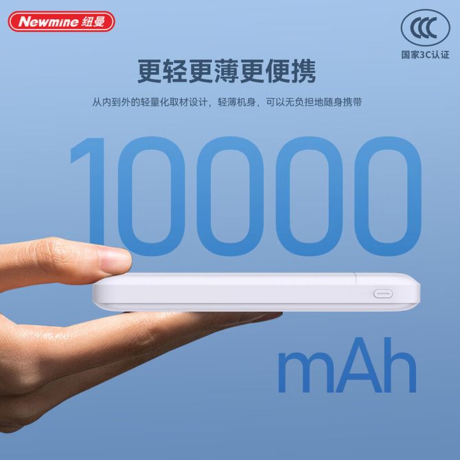 纽曼(Newmine) 3C认证 10000毫安快速充电超薄移动电源 轻薄便携双USB输出充电宝 轻薄便携 双口设计 2A输出 2USB输出 安全登机 两台设备同时充电 兑换价格 2200 里程 会员卡别 终身白金卡 白金卡 金卡 银卡 普通卡 儿童卡 服务 由 上海亨奈电器科技有限公司 发货并提供售后 电池容量: 8001mAh-10000mAh 颜色: 白色 黑色 购买数量: 件 库存件 配送地址: 立即购买 加入购物车 成功添加到购物车 关闭 购物车共有 种商品 总金额为: 组合销售 产品介绍 产品规格 售后服务 产品咨询 发现好货 ZNNCO 充电宝20000毫安时超薄小巧迷你自带线大容量快充移动电源便携苹果华为小米2万mAh手机 4200 里程 睿量/Remax 磁吸无线充电宝 Magsafe快充 5000mAh超薄小巧便携移动电源 手机背夹迷你移动电源 适用于苹果华为小米手机 RPP-107 4600 里程 纽曼 AL35大容量10000毫安时 22.5W超级快充充电宝 超薄小巧便携迷你 3700 里程 纽曼(Newmine) 自带四线充电宝 3C认证 LED智能数显10000毫安移动电源 AL03 经典黑 3000 里程 雷摄 【3C认证】LS-YDZJ01 10000毫安 四线多功能移动电源 黑色 2000 里程