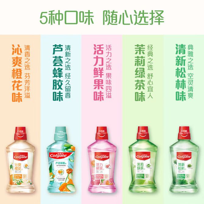 组合销售 产品介绍 产品规格 售后服务 产品咨询 发现好货 舒客 沁爽清新漱口水(茶爽新)500mL*2大瓶 去口臭温和不辣口无醇涑口液口味含氟 1600 里程 高露洁(GOLGATE)漱口水500ml*2瓶茉莉绿茶味 2400 里程 高露洁(Colgate)漱口水250ml*2瓶元气薄荷味 1700 里程 高露洁(Colgate)贝齿鲜果薄荷漱口水500ml×3(新老包装随机发货) 3400 里程 海氏海诺 漱口水型 薄荷口腔清新剂口臭清洁抑菌液 无酒精 500ml/瓶 1200 里程