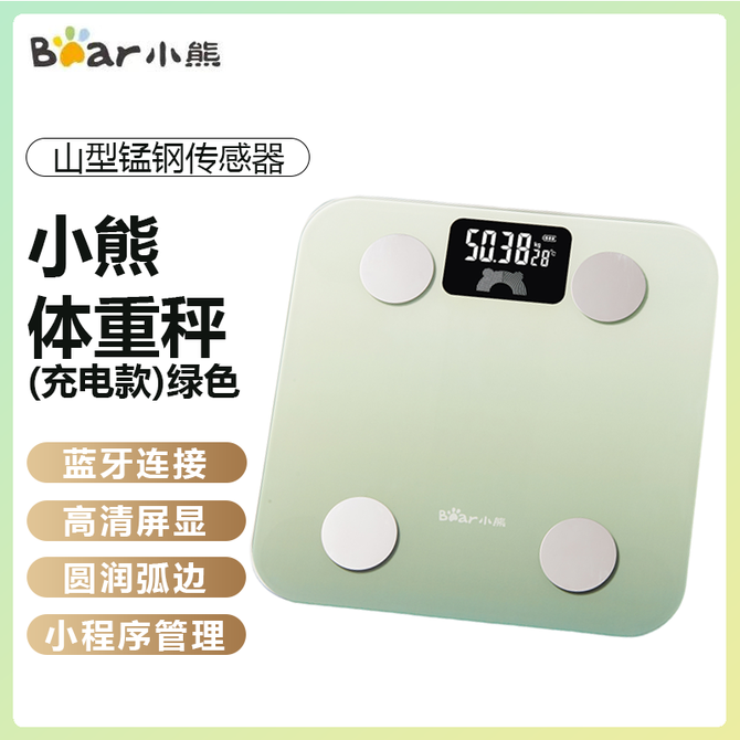 小熊/Bear 体重秤(充电款)绿色 BIA电阻测脂芯片精准感知28项身体数据一目了然支持多人共用时尚百搭体重秤 蓝牙连接 高清屏显 圆润弧边 小程序管理 兑换价格 3000 里程 会员卡别 终身白金卡 白金卡 金卡 银卡 普通卡 儿童卡 服务 由 北京致诚博雅贸易有限公司 发货并提供售后 颜色: 绿色 购买数量: 件 库存件 配送地址: 立即购买 加入购物车 成功添加到购物车 关闭 购物车共有 种商品 总金额为: 组合销售 产品介绍 产品规格 售后服务 产品咨询 发现好货 奥克斯/AUX 智能体重秤ACC-5110A1充电款 1700 里程 奥克斯/AUX 体重秤体脂称 3001W1M 充电款 2000 里程 小米体重秤2 家用健康秤电子秤 高精度智能分析隐藏式LED屏幕 4400 里程 小米 家用健康秤电子秤高精度 人物双模式 APP数据测量智能体重秤S200白色 3900 里程 美的/Midea 体重秤充电家用人体电子秤数显称重健康称 电池款 2200 里程