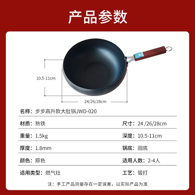 金卫德 章丘铁锅 24cm古法大肚锅步步高升JWD-020 纯手工锻打锤纹大肚锅炒菜锅非遗工艺古法传承0化学涂层的健康守护更适合国人 会员产品咨询电话:4000312151 兑换价格 2800 里程 会员卡别 终身白金卡 白金卡 金卡 银卡 普通卡 儿童卡 服务 由 桃花林厨具专营店 发货并提供售后 颜色: 黑色 购买数量: 件 库存件 配送地址: 立即购买 加入购物车 成功添加到购物车 关闭 购物车共有 种商品 总金额为: