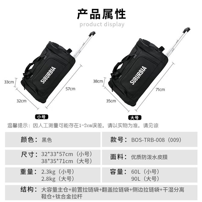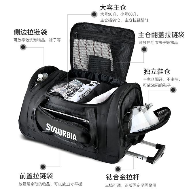 思博亚/SUBURBIA 大容量多功能旅行袋 拉杆包 黑色 90L