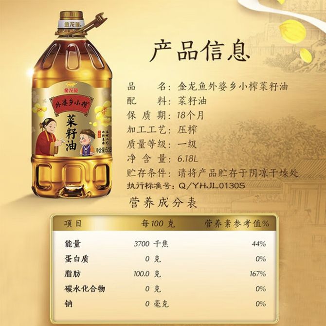 金龙鱼 外婆乡小榨菜籽-油6.18升 非转基因压榨 新老包装随机发货 油清无杂 味道更香醇 兑换价格 15100 里程 会员卡别 终身白金卡 白金卡 金卡 银卡 普通卡 儿童卡 服务 由 全食行 发货并提供售后 油品规格: 6.18L 购买数量: 件 库存件 配送地址: 立即购买 加入购物车 成功添加到购物车 关闭 购物车共有 种商品 总金额为: 组合销售 产品介绍 产品规格 售后服务 产品咨询 发现好货 长寿花 金胚玉米油食用油非转基因压榨一级 1.8L 2200 里程 珍佰粮菜籽油5L 5500 里程 福临门 一级大豆油900ML/瓶 优质家用食用油 1100 里程 福临门 家香味食用油 沂蒙土榨 花生仁油900ml 1600 里程 金龙鱼 浓香花生油5L 大桶装物理压榨一级厨房烹饪炒菜植物油粮油家庭食用油 浓香花生油食用油 5000 里程