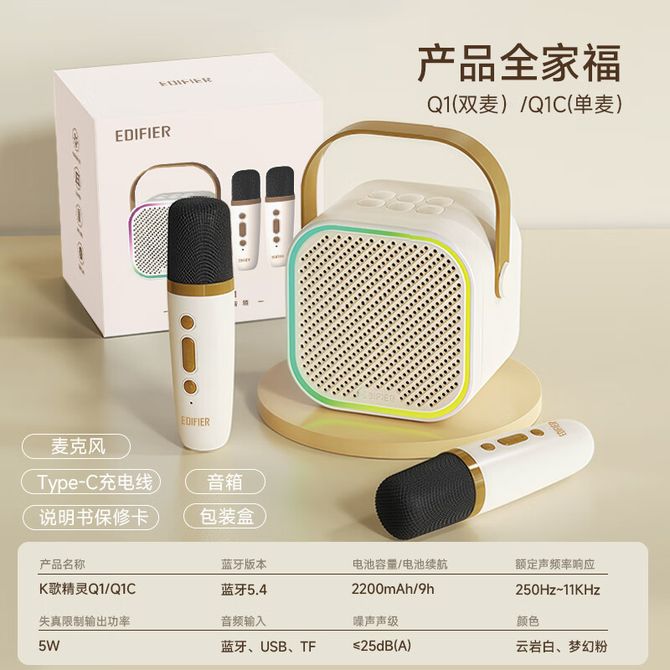 漫步者/EDIFIER K歌音响Q1【双麦版-梦幻粉】 家庭KTV音箱 便携K歌音箱 智能唱歌神器卡拉OK套装 七夕情人节礼物 家庭KTV音箱 便携K歌音箱 智能唱歌神器卡拉OK套装 七夕情人节礼物 兑换价格 7000 里程 会员卡别 终身白金卡 白金卡 金卡 银卡 普通卡 儿童卡 服务 由 华睿博望 发货并提供售后 颜色: 粉色 购买数量: 件 库存件 配送地址: 立即购买 加入购物车 成功添加到购物车 关闭 购物车共有 种商品 总金额为: