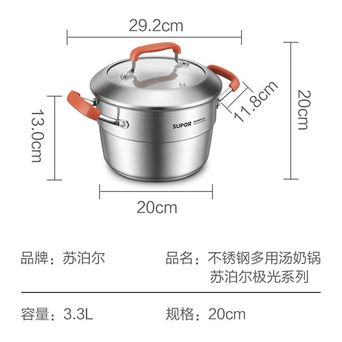苏泊尔(SUPOR) 极光系列汤锅304不锈钢炖锅20cm汤蒸锅加高加深蒸煮多用 加厚锅底无涂层轻松易洁 (详情图片共用20cm汤锅)蒸煮多用 硅胶防烫手柄 食品级304不锈钢 加高加深 加厚锅底 轻松易洁 兑换价格 8700 里程 会员卡别 终身白金卡 白金卡 金卡 银卡 普通卡 儿童卡 商品已下架 1. 请联系卖家咨询 2. 逛逛广西桂雅文化传媒有限公司选择其他商品 组合销售 产品介绍 产品规格 售后服务 产品咨询 发现好货 拜格 带磁不锈钢28CM单层汤蒸锅 BG1197 2000 里程 德铂(Debo) 弗伦斯堡不锈钢汤锅炖锅20cm电磁炉通用 DEP-179 2600 里程 康宁visions晶彩系列透明锅琥珀色玻璃锅耐热可明火汤锅炖锅 1.25L晶彩锅VS-12-E-LCL/ZK 10500 里程 拜格奶锅配蒸格 宝宝辅食锅汤锅不锈钢加厚电磁炉燃气通用蒸锅泡面锅 BG1354 2100 里程 拜格(Bayco) 不锈钢带蒸格小奶锅16cm 婴儿辅食锅 汤锅煮面锅 燃气电磁炉通用 BG8198 1700 里程
