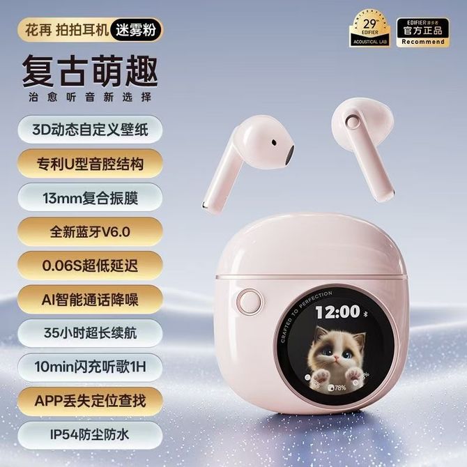 漫步者/EDIFIER 拍拍真无线蓝牙耳机 酷玩彩屏半入耳式HiFi音质 持久续航耳机粉色 大单元音乐耳麦 高清全彩触摸小圆屏,玩转九大交互功能,13mm大单元,时尚轻盈,HiFi音质,AI通话降噪,最新蓝牙6.0,长效续航,低延迟游戏,多EQ音效,防尘防水,专属APP! 兑换价格 10800 里程 会员卡别 终身白金卡 白金卡 金卡 银卡 普通卡 儿童卡 服务 由 智科精品 发货并提供售后 颜色: 粉色 购买数量: 件 库存件 配送地址: 立即购买 加入购物车 成功添加到购物车 关闭 购物车共有 种商品 总金额为: