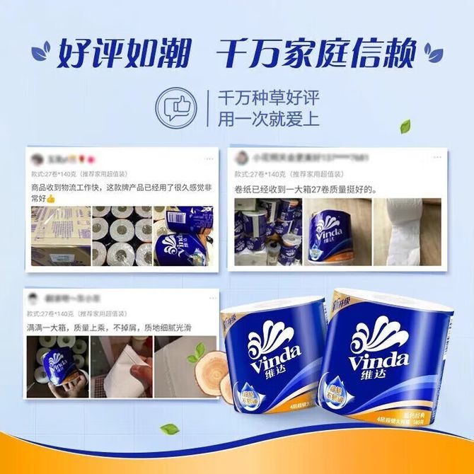 组合销售 产品介绍 产品规格 售后服务 产品咨询 发现好货 维达卷纸 卫生纸实惠装厕纸家用厕所纸巾手纸整箱批有芯大卷家庭装 1200-2300 里程 维达 Vinda 卷纸 140g/卷*10卷 蓝色经典3层卫生纸 1300 里程 心相印抽纸 茶语丝享系列 量贩家庭装 3层*100抽*4包(茶香 压花) 1100 里程 心相印 经典系列 二层面巾纸 180抽*6包*1提 1100 里程 维达Vinda 超韧系列抽纸(3层*130抽*6包) 原生木浆卫生餐巾纸婴儿面巾纸 6包优惠装 1100 里程