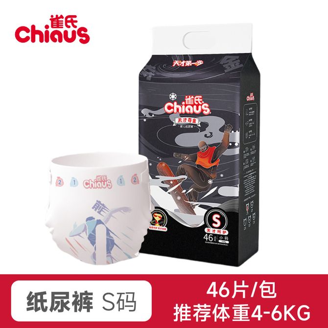 雀氏/Chiaus 天才夺金婴儿纸尿裤S 46片 透气纸尿裤 兑换价格 5700 里程 会员卡别 终身白金卡 白金卡 金卡 银卡 普通卡 儿童卡 服务 由 萌枢母婴专营店 发货并提供售后 初生号NB: 小号S 纸尿裤规格: 46片装 购买数量: 件 库存件 配送地址: 立即购买 加入购物车 成功添加到购物车 关闭 购物车共有 种商品 总金额为: 组合销售 产品介绍 产品规格 售后服务 产品咨询 发现好货 帮宝适/Pampers 清新帮拉拉裤大包装加大码34片 4700 里程 五羊 拉拉裤柔柔芯成长裤XL20片(12-17kg) 1700 里程 好奇/Huggies 心钻装小森林成长裤XL32片(12-17kg)加大号婴儿拉拉裤纯植物织造超薄透气拉拉裤(新老包装交替发货) 7200 里程 好奇/Huggies 森林密语纸尿裤L36(9-14kg)大号婴儿尿不湿超薄透气 5700 里程 bebetour 皇家宝贝mini系列拉拉裤宝宝超薄透气纸尿裤成长训练裤(多种尺码可选) 1700 里程