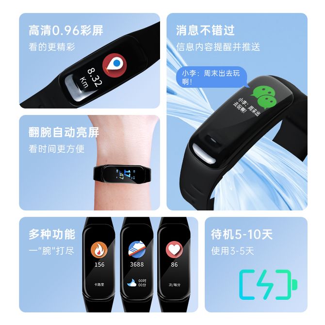 Only&Home 硅胶运动智能手环血压心率血氧睡眠质量检测守护健康防水设计