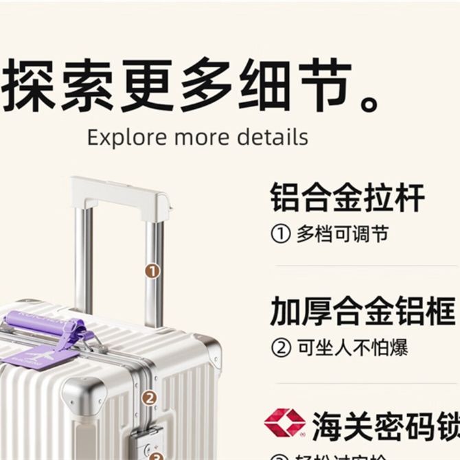 组合销售 产品介绍 产品规格 售后服务 产品咨询 发现好货 星迪威克-万向轮行李箱登机箱传统美学男女通用-750复古包角-20寸 5600 里程 恒源祥20寸网红拉杆箱行李箱拉链万向轮登机箱静音学生旅游潮流商务海关密码锁旅行箱HYX-2007 8000 里程 TYMON拉杆箱男女商务旅行登机箱TSA万向轮行李箱20英寸密码箱 黑色 幽兰丽影 12900 里程 皮尔卡丹/Pierre Cardin 20英寸简约时尚行李箱拉杆箱登机箱旅行箱密码箱子男女通用 5700 里程 旅行之家(Travelhouse)T1879 20寸全铝拉杆箱 轻盈耐磨万向轮登机箱行李箱 28900 里程