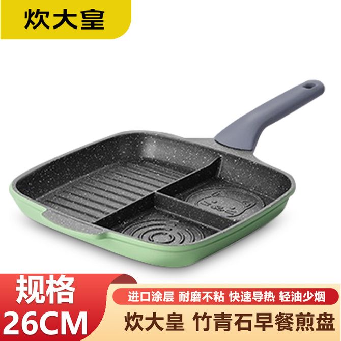 炊大皇(COOKER KING) 竹青石早餐煎盘 26cm家用高颜值轻油少烟煎蛋牛排煎盘 进口涂层 耐磨不粘 快速导热 轻油少烟 兑换价格 5700 里程 会员卡别 终身白金卡 白金卡 金卡 银卡 普通卡 儿童卡 服务 由 众生缘(江苏)互联网科技有限公司 发货并提供售后 颜色: 其他 购买数量: 件 库存件 配送地址: 立即购买 加入购物车 成功添加到购物车 关闭 购物车共有 种商品 总金额为: 组合销售 产品介绍 产品规格 售后服务 产品咨询 发现好货 炊大皇(COOKER KING) 星空不粘煎锅 26cm不带盖 WG41357 平底锅家用无油烟 2200 里程 苏泊尔(SUPOR)j火红点不粘锅 平底锅煎锅炒锅 电磁炉燃气炒菜锅牛排煎蛋锅PJ28R4 7700 里程 张小泉 锤纹精铁煎锅26cm家用不粘锅煎蛋锅煎牛排平底锅煎锅 3000 里程 张小泉 正品平底锅26cm家用不粘锅煎锅 无涂层锤纹精铁煎锅C32850100 3000 里程 九阳/Joyoung 煎锅平底锅不粘锅家用24cm小煎锅煎蛋饼牛排煎锅JLW2401 2200 里程