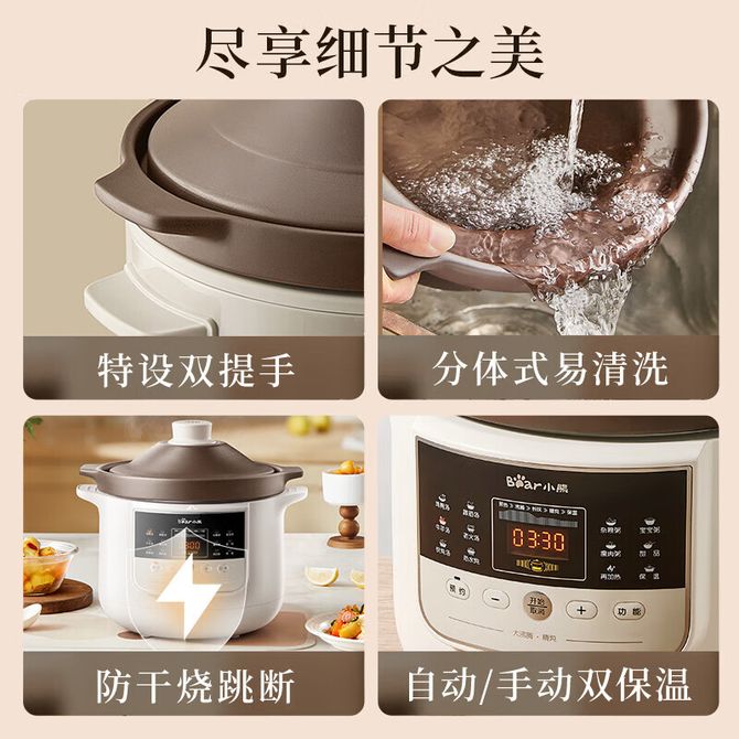 组合销售 产品介绍 产品规格 售后服务 产品咨询 发现好货 小熊/Bear 电炖锅1-2人小炖锅煮粥锅智能预约定时煲汤锅炖汤锅燕窝炖盅 4400 里程 苏泊尔(SUPOR) 电火锅家用不粘煎涮炖煮多功能4L大容量一体式大火力电煮锅不粘煎涮炖煮多功能料理锅 H40YK757 5700 里程 西屋/Westinghouse 多功能电煮锅电炖锅1.6L一锅多能WFB16A 11600 里程 苏泊尔(SUPOR) 电火锅 宿舍小电锅学生寝室一体泡面小火锅 多功能锅涮肉涮菜 1.7L 【 单锅】H17YK489 3000 里程 小熊(Bear)电炖锅电炖盅煮粥神器煲汤锅炖汤锅婴儿煮粥锅熬粥燕窝炖盅DDG-E15K2 4800 里程