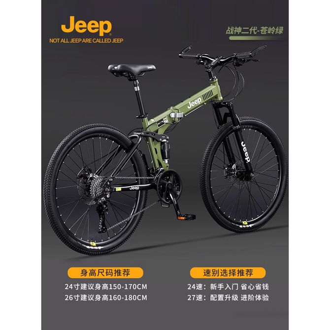 Jeep 吉普山地自行车男女学生成人双减震碟刹越野折叠变速山地-战神 战神-辐条轮 24寸(适合身高1.5~1.75m) 27速 吉普山地自行车辐条轮24寸27速 兑换价格 38700 里程 会员卡别 终身白金卡 白金卡 金卡 银卡 普通卡 儿童卡 服务 由 赛丹孚运动户外专营店 发货并提供售后 颜色: 橙色 黑色 绿色 购买数量: 件 库存件 配送地址: 立即购买 加入购物车 成功添加到购物车 关闭 购物车共有 种商品 总金额为: 组合销售 产品介绍 产品规格 售后服务 产品咨询 发现好货 凤凰 21速26寸辐条轮山地自行车-霸道变速公路赛车 越野山地车 23400 里程 凤凰(Phoenix) 山地自行车 成人男女学生越野变速单车 26寸24速 26900 里程 永久(FOREVER) 自行车 轻便上班 通勤 代步单车 24寸 复古黄 21300 里程 凤凰(Phoenix) 自行车 男女脚踏代步单车 成人轻便学生车 城市复古通勤休闲车 26寸 25200 里程 永久(FOREVER) 山地自行车22英寸24变速男女学生儿童青少年城市单车 30400 里程