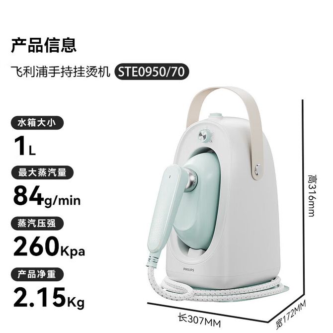 飞利浦/Philips 熨烫机 STE0950/70【海岛绿】家用小型家用挂烫机熨斗 不占地免收纳增压大蒸汽手持 家用小型家用挂烫机熨斗 不占地免收纳增压大蒸汽手持 兑换价格 29600 里程 会员卡别 终身白金卡 白金卡 金卡 银卡 普通卡 儿童卡 服务 由 纳华优选 发货并提供售后 颜色: 绿色 购买数量: 件 库存件 配送地址: 立即购买 加入购物车 成功添加到购物车 关闭 购物车共有 种商品 总金额为: 组合销售 产品介绍 产品规格 售后服务 产品咨询 发现好货 海尔电熨斗干湿两用蒸汽家用学生宿舍小型手持熨烫衣服机商服装店YD1618专销 4400 里程 海尔(Haier)电熨斗 蒸汽挂烫机 2000W 陶瓷底板 垂直熨烫 家用手持迷你HY-Y2028G 5700 里程 苏泊尔(SUPOR) 挂烫机电熨斗家用小型熨烫机1800W手持熨斗烫衣机大水箱 YD05BT-18 3900 里程 苏泊尔(SUPOR) 挂烫机家用熨斗澎湃大蒸汽干湿双熨手持熨烫机小型差旅便携式蒸汽电熨斗 【快速蒸汽】EGH-923B 4400 里程 苏泊尔(SUPOR) 挂烫机家用微增压大蒸汽电熨斗手持熨烫机大功率便携式除菌熨斗EGH-903A 6500 里程