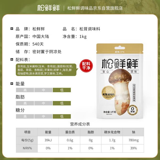 松鲜鲜 松茸调味料1kg*1袋 0添加减钠29% 代替盐鸡精味精炒菜炖汤煲汤调味 松茸提鲜 自然鲜味 兑换价格 3200 里程 会员卡别 终身白金卡 白金卡 金卡 银卡 普通卡 儿童卡 服务 由 清益食品专营店 发货并提供售后 规格: 袋装 购买数量: 件 库存件 配送地址: 立即购买 加入购物车 成功添加到购物车 关闭 购物车共有 种商品 总金额为: