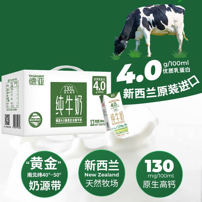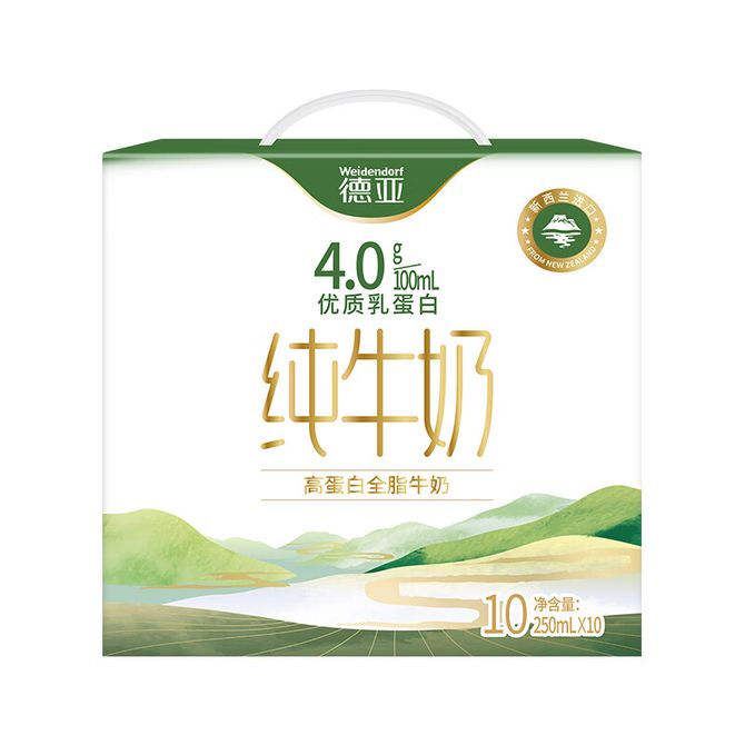 德亚 (Weidendorf)牛奶礼盒装送人推荐 4.0-10礼盒(新西兰进口) 新老包装随机发货 兑换价格 3000 里程 会员卡别 终身白金卡 白金卡 金卡 银卡 普通卡 儿童卡 服务 由 罗迪诺食品专营店 发货并提供售后 规格: 礼盒 购买数量: 件 库存件 配送地址: 立即购买 加入购物车 成功添加到购物车 关闭 购物车共有 种商品 总金额为: 组合销售 产品介绍 产品规格 售后服务 产品咨询 发现好货 蒙牛 特仑苏纯牛奶苗条装250ml×12盒 2900 里程 三元 经典小方白全脂纯牛奶250ml*24盒牛奶 整箱 3400 里程 伊利金典纯牛奶250ml*12盒整箱 2200 里程 三元 极致 全脂纯牛奶250ml*12盒 优质乳蛋白 恪守天然亲和 2900 里程 伊利 金典纯牛奶整箱 250ml*12盒 原生高钙3.6g乳蛋白 2000 里程