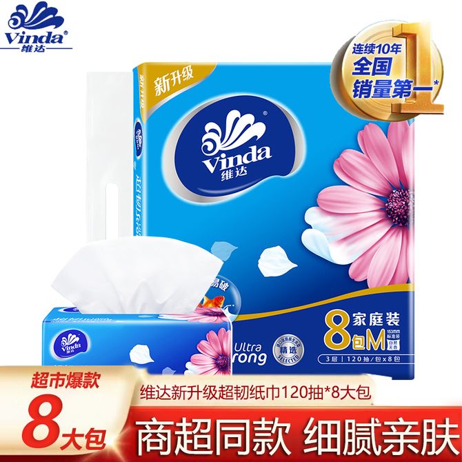 维达 超韧抽纸120抽8包【自然无香】三层加厚湿水不易破面巾纸提装软抽纸巾餐巾纸卫生纸 M码大尺寸加大加厚,包装升级,品质不变,新旧包装随机发货。 兑换价格 1200 里程 会员卡别 终身白金卡 白金卡 金卡 银卡 普通卡 儿童卡 服务 由 京狮文化生活馆 发货并提供售后 包装数量: 1提 购买数量: 件 库存件 配送地址: 立即购买 加入购物车 成功添加到购物车 关闭 购物车共有 种商品 总金额为: 组合销售 产品介绍 产品规格 售后服务 产品咨询 发现好货 维达卷纸 卫生纸实惠装厕纸家用厕所纸巾手纸整箱批有芯大卷家庭装 1200-2300 里程 维达 Vinda 卷纸 140g/卷*10卷 蓝色经典3层卫生纸 1300 里程 心相印抽纸 茶语丝享系列 量贩家庭装 3层*100抽*4包(茶香 压花) 1100 里程 心相印 经典系列 二层面巾纸 180抽*6包*1提 1100 里程 维达Vinda 超韧系列抽纸(3层*130抽*6包) 原生木浆卫生餐巾纸婴儿面巾纸 6包优惠装 1100 里程