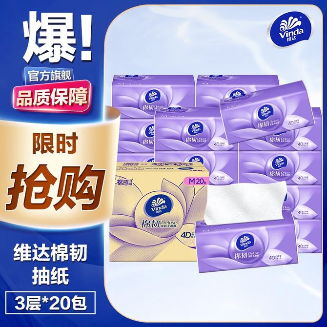 组合销售 产品介绍 产品规格 售后服务 产品咨询 发现好货 维达卷纸 卫生纸实惠装厕纸家用厕所纸巾手纸整箱批有芯大卷家庭装 1200-2300 里程 维达 Vinda 卷纸 140g/卷*10卷 蓝色经典3层卫生纸 1300 里程 心相印抽纸 茶语丝享系列 量贩家庭装 3层*100抽*4包(茶香 压花) 1100 里程 心相印 经典系列 二层面巾纸 180抽*6包*1提 1100 里程 维达Vinda 超韧系列抽纸(3层*130抽*6包) 原生木浆卫生餐巾纸婴儿面巾纸 6包优惠装 1100 里程