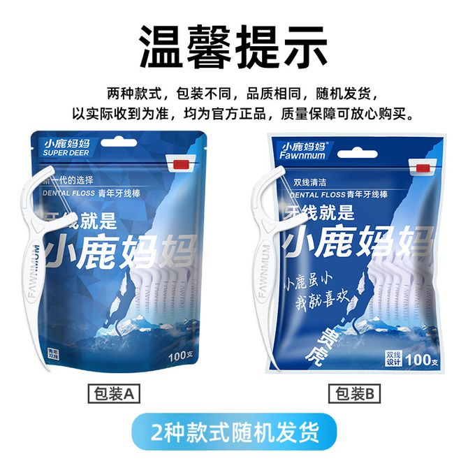 小鹿妈妈(FAWNMUM) 双线贵虎牙线棒 牙签300支方便携带口腔清洁牙线 100支/袋*3袋 双线加倍清洁 畅游齿间清新 兑换价格 1100 里程 会员卡别 终身白金卡 白金卡 金卡 银卡 普通卡 儿童卡 服务 由 上海攀宸贸易有限公司 发货并提供售后 牙刷牙线规格: 组合装 购买数量: 件 库存件 配送地址: 立即购买 加入购物车 成功添加到购物车 关闭 购物车共有 种商品 总金额为: 组合销售 产品介绍 产品规格 售后服务 产品咨询 发现好货 舒客舒克竹炭洁齿牙线棒50支*2盒成人坚韧扁线牙签方便携随身盒 1100 里程 高露洁(Colgate) 宽柔绵绵丝牙刷轻适刷双支装 1100 里程 狮王 (Lion )细齿洁抗菌儿童牙刷 细毛软毛 颜色随机发 2000 里程 舒客 洁齿牙线棒家庭旅行装12袋/共240支 便携分装 细扁线专效洁齿 高拉力深层清洁牙缝 1500 里程 冷酸灵 软毛成人牙刷 细毛护龈深洁齿缝 国货老牌 云感觉牙刷 10支 1400 里程