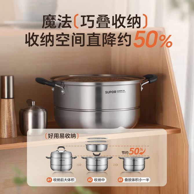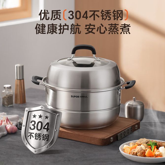 苏泊尔(SUPOR) 蒸锅汤锅家用双层多功能易存储复底汤蒸锅EZ26JBS01 6.8L 食品接触级别304不锈钢 兑换价格 6500 里程 会员卡别 终身白金卡 白金卡 金卡 银卡 普通卡 儿童卡 服务 由 人人余厨具专营店 发货并提供售后 颜色: 银色 购买数量: 件 库存件 配送地址: 立即购买 加入购物车 成功添加到购物车 关闭 购物车共有 种商品 总金额为: 组合销售 产品介绍 产品规格 售后服务 产品咨询 发现好货 苏泊尔(SUPOR) 蒸锅不锈钢28cm复底双层SZ28B5蒸鱼蒸馒头蒸馍大蒸锅蒸笼 8700 里程 MAXCOOK 蒸锅 加厚不锈钢汤锅高拱盖蒸鱼锅火锅大容量 燃气灶电磁炉通用 MCZ8597 2层 28cm 3100 里程 拜格双层木柄复底蒸锅32CM304不锈钢BG50093 5300 里程 德铂(Debo)汤锅不锈钢单层蒸锅蒸笼电磁炉两用锅艾琳诺26cm DEP-DS146 2100 里程 德铂(Debo) 科洛姆双层蒸锅不锈钢汤锅20cm不挑炉灶DEP-913 2600 里程