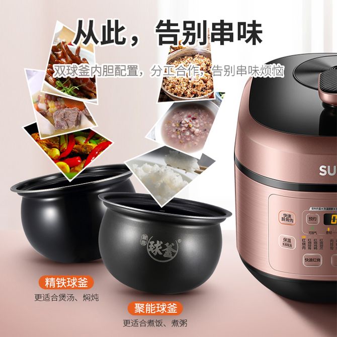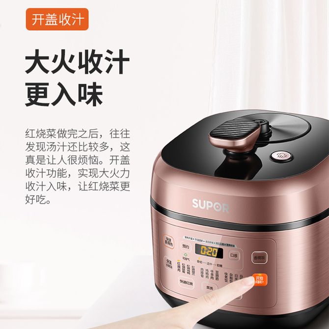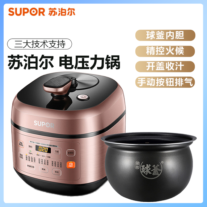 组合销售 产品介绍 产品规格 售后服务 产品咨询 发现好货 苏泊尔(SUPOR)电压力锅 6升大容量 智能触控 球釜双胆 开盖收汁 一键排压 SY-60YC8001Q 高压锅 16900 里程 美的/Midea 电压力锅家用5L大容量多功能高压锅双胆一键收汁智能预约不粘电高压锅电饭锅煮粥煲汤锅 一锅双胆【一键收汁入味】 YL50M1-702 10600 里程 苏泊尔(SUPOR) 5L电压力锅家用电高压锅双胆高压电饭锅煮饭智能预约 SY-50YC8186 11300 里程 美的/Midea 电压力锅 【一锅双胆】5L全自动家用智能预约 上蒸下煮 不粘双胆煲汤炖肉 YL50Q3-451 10900 里程 美的/Midea 电压力锅 高压锅家用电压力煲智能预约电饭煲大容量多功能定时预约电饭煲3-8人单胆旋钮款4L MY-E4809 8700 里程
