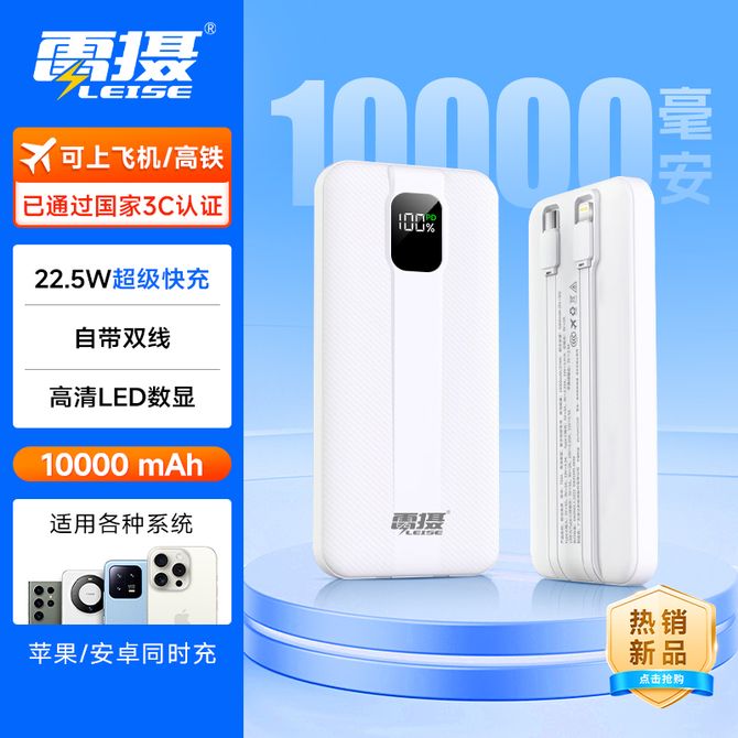 雷摄 T86A【3C认证】充电宝10000毫安 22.5W快充带双线数显移动电源 白色 适用户外苹果17华为小米荣耀T86A 兑换价格 2400 里程 会员卡别 终身白金卡 白金卡 金卡 银卡 普通卡 儿童卡 服务 由 雷摄官方旗舰店 发货并提供售后 电池容量: 8001mAh-10000mAh 颜色: 白色 购买数量: 件 库存件 配送地址: 立即购买 加入购物车 成功添加到购物车 关闭 购物车共有 种商品 总金额为: 组合销售 产品介绍 产品规格 售后服务 产品咨询 发现好货 ZNNCO 充电宝20000毫安时超薄小巧迷你自带线大容量快充移动电源便携苹果华为小米2万mAh手机 4200 里程 睿量/Remax 磁吸无线充电宝 Magsafe快充 5000mAh超薄小巧便携移动电源 手机背夹迷你移动电源 适用于苹果华为小米手机 RPP-107 4600 里程 纽曼(Newmine) 自带四线充电宝 3C认证 LED智能数显10000毫安移动电源 AL03 经典黑 3000 里程 纽曼 AL35大容量10000毫安时 22.5W超级快充充电宝 超薄小巧便携迷你 3700 里程 雷摄 【3C认证】LS-YDZJ01 10000毫安 四线多功能移动电源 黑色 2000 里程