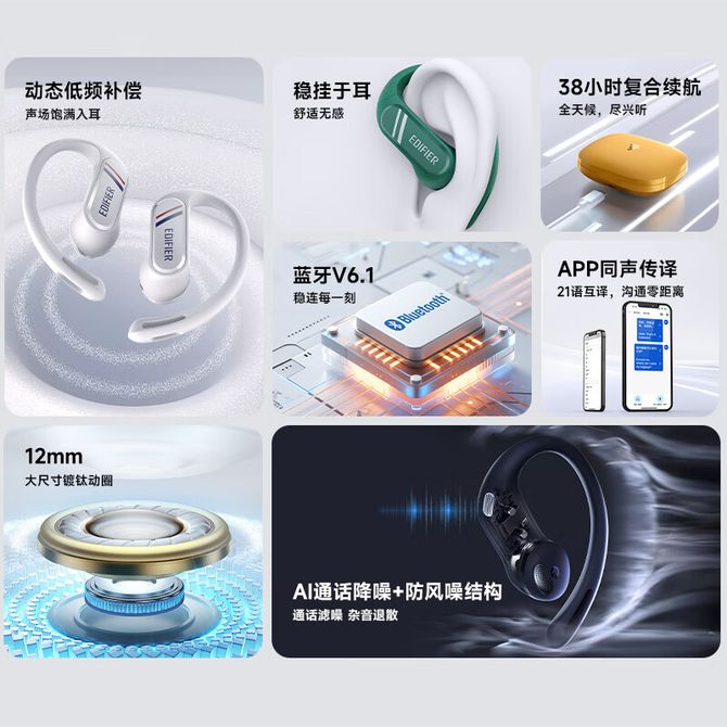 漫步者/EDIFIER Comfo SE 开放式真无线蓝牙耳机 蓝牙V6.1 同声传译 运动跑步耳机 深邃蓝 动态低频补偿 声场饱满入耳 稳挂于耳 舒适无感 蓝牙V6.1 兑换价格 10900 里程 会员卡别 终身白金卡 白金卡 金卡 银卡 普通卡 儿童卡 服务 由 本原智选数码科技 发货并提供售后 颜色: 深蓝色 购买数量: 件 库存件 配送地址: 立即购买 加入购物车 成功添加到购物车 关闭 购物车共有 种商品 总金额为: 组合销售 产品介绍 产品规格 售后服务 产品咨询 发现好货 雷摄 运动蓝牙耳机无线跑步超长续航待机半入耳降噪高端健身2024新款 BT-03半入耳 1400 里程 魔声 (MONSTER)Open Ear AC600骨传导概念蓝牙耳机开放式无线夹耳式不入耳式耳夹式运动通话降噪手机通用 3700 里程 飞利浦(PHILIPS)真无线蓝牙耳机跑步运动耳机防水防汗TAT1168 8700 里程 漫步者EDIFIER 真无线蓝牙耳机Zero Air月白 通话降噪半入耳低延游戏手机音乐耳塞 5200 里程 华为/Huawei FreeBuds SE 3 无线蓝牙耳机 流光金 6100 里程