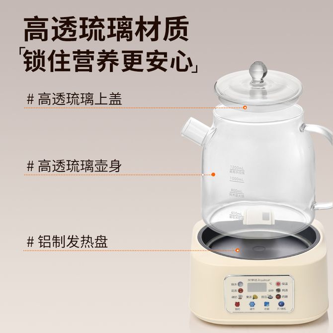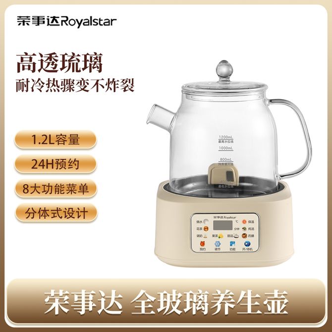荣事达/Royalstar 全玻璃养生壶 1.2L 电水壶办公室多功能电热水壶家用智能保温花茶壶煮茶壶 1.2L容量 高透琉璃 定时烹煮 智能面板 8大功能菜单 24小时预约 兑换价格 7800 里程 会员卡别 终身白金卡 白金卡 金卡 银卡 普通卡 儿童卡 服务 由 广西桂福礼供应链管理有限公司 发货并提供售后 颜色: 其他 购买数量: 件 库存件 配送地址: 立即购买 加入购物车 成功添加到购物车 关闭 购物车共有 种商品 总金额为:
