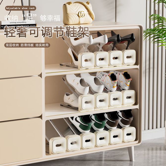 洁百纳/JIEBAINA 双层鞋架鞋子收纳神器可调节透明鞋柜省空间鞋架子分层隔板鞋托架 奶油白8个装 双层鞋架鞋子收纳神器 奶油白8个装 兑换价格 2500 里程 会员卡别 终身白金卡 白金卡 金卡 银卡 普通卡 儿童卡 服务 由 檀文家居生活旗舰店 发货并提供售后 颜色: 米白色 购买数量: 件 库存件 配送地址: 立即购买 加入购物车 成功添加到购物车 关闭 购物车共有 种商品 总金额为: