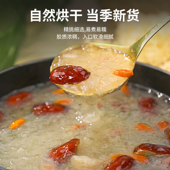 盛耳 小朵银耳320g(桶)干货雪耳白木耳糯耳古田银耳红枣莲子羹汤材料 精挑细选,易煮易糯,胶质浓稠,入口软滑细腻 兑换价格 2100 里程 会员卡别 终身白金卡 白金卡 金卡 银卡 普通卡 儿童卡 服务 由 清益食品专营店 发货并提供售后 规格: 桶装 购买数量: 件 库存件 配送地址: 立即购买 加入购物车 成功添加到购物车 关闭 购物车共有 种商品 总金额为: 组合销售 产品介绍 产品规格 售后服务 产品咨询 发现好货 岚海渔歌(LANHAIYUGE) 金钩海米虾米干货非特级无盐新鲜开洋虾皮海虾米干虾仁干250g 1900 里程 十月稻田 红枸杞子250g半斤特级干枸杞泡水煲汤煮粥食材 1100 里程 岚海渔歌 金钩海米250g虾米干货 1900 里程 十月稻田 新疆灰枣500g一等灰枣新疆特产小红枣零食煲汤煮粥干货 1100 里程 十月稻田 东北黑木耳 150g肉厚无根干木耳黑龙江东宁特产 火锅炒菜凉拌 6970093763042 1100 里程