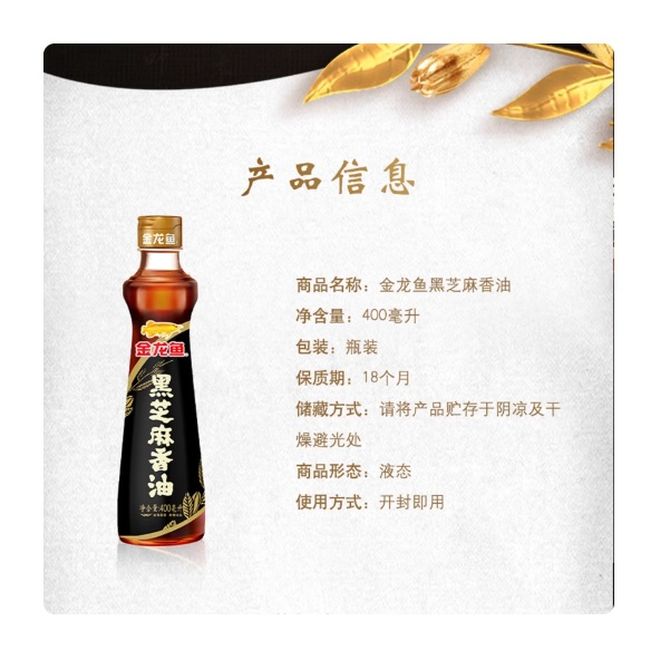 金龙鱼 调料油黑芝麻香油400ml厨房凉拌房烹饪火锅纯芝麻香油 黑芝麻香油400ml 兑换价格 2200 里程 会员卡别 终身白金卡 白金卡 金卡 银卡 普通卡 儿童卡 服务 由 烁烁食品店 发货并提供售后 油品规格: 400ml 购买数量: 件 库存件 配送地址: 立即购买 加入购物车 成功添加到购物车 关闭 购物车共有 种商品 总金额为: 组合销售 产品介绍 产品规格 售后服务 产品咨询 发现好货 珍佰粮菜籽油5L 5500 里程 长寿花 金胚玉米油食用油非转基因压榨一级 1.8L 2200 里程 福临门 一级大豆油900ML/瓶 优质家用食用油 1100 里程 福临门 家香味食用油 沂蒙土榨 花生仁油900ml 1300 里程 长寿花金胚玉米油1.8L 2400 里程