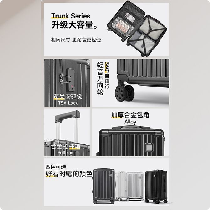 组合销售 产品介绍 产品规格 售后服务 产品咨询 发现好货 星迪威克-万向轮行李箱登机箱传统美学男女通用-750复古包角-20寸 5600 里程 恒源祥20寸网红拉杆箱行李箱拉链万向轮登机箱静音学生旅游潮流商务海关密码锁旅行箱HYX-2007 8000 里程 TYMON拉杆箱男女商务旅行登机箱TSA万向轮行李箱20英寸密码箱 黑色 幽兰丽影 12900 里程 皮尔卡丹/Pierre Cardin 20英寸简约时尚行李箱拉杆箱登机箱旅行箱密码箱子男女通用 5700 里程 旅行之家(Travelhouse)T1879 20寸全铝拉杆箱 轻盈耐磨万向轮登机箱行李箱 28900 里程