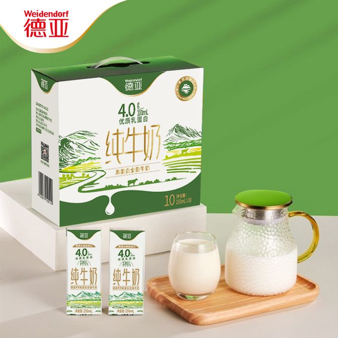 德亚 4.0g高钙高蛋白全脂纯牛奶250ml*10盒 高端礼盒送礼 兑换价格 2700 里程 会员卡别 终身白金卡 白金卡 金卡 银卡 普通卡 儿童卡 服务 由 中垦食品专营店 发货并提供售后 规格: 礼盒 购买数量: 件 库存件 配送地址: 立即购买 加入购物车 成功添加到购物车 关闭 购物车共有 种商品 总金额为: 组合销售 产品介绍 产品规格 售后服务 产品咨询 发现好货 蒙牛 特仑苏纯牛奶苗条装250ml×12盒 2900 里程 三元 经典小方白全脂纯牛奶250ml*24盒牛奶 整箱 3400 里程 伊利金典纯牛奶250ml*12盒整箱 2200 里程 伊利 金典纯牛奶整箱 250ml*12盒 3.6g乳蛋白 原生高钙 礼盒装 1800 里程 特仑苏 新日期纯牛奶250ml*12盒 3.6g乳蛋白 礼盒装 京东/顺丰发货 2400 里程