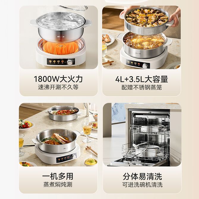 小熊/Bear 电火锅4升配送3.5L不锈钢蒸笼【健康0涂层】304不锈钢速沸电煮锅电蒸锅家用多功能上蒸下煮全钢锅分体式电热锅多用途锅 升级304不锈钢锅 0涂层更健康 耐磨耐用 可放进洗碗机 轻松清洁 兑换价格 11300 里程 会员卡别 终身白金卡 白金卡 金卡 银卡 普通卡 儿童卡 服务 由 广西桂福礼供应链管理有限公司 发货并提供售后 颜色: 其他 购买数量: 件 库存件 配送地址: 立即购买 加入购物车 成功添加到购物车 关闭 购物车共有 种商品 总金额为: 组合销售 产品介绍 产品规格 售后服务 产品咨询 发现好货 苏泊尔(SUPOR)空气炸锅 家用多功能4.2L大容量 烤箱薯条机 无油烟电炸锅 大功率 无油低脂煎炸锅KJ42D811 6500 里程 苏泊尔(SUPOR)空气炸锅家用3L大容量电炸锅 蒸汽嫩炸多功能无油烟煎炸薯条机烤箱KD30DQ815 21700 里程 美的/Midea 空气炸锅 家用5升可视炸锅金属内腔体微蒸汽多功能智能双旋控温电炸锅 KZE5089 10900 里程 美的/Midea 空气炸锅 可视 不用翻面 金属内腔 蒸汽嫩炸 三档烘烤风力 5L KZC5089 10700 里程 小熊/Bear 空气炸锅 4D漩烤不用翻面 全自动 5L实用大容量 可视 蒸汽嫩炸 控油脱脂 炸烤箱一体机 9100 里程