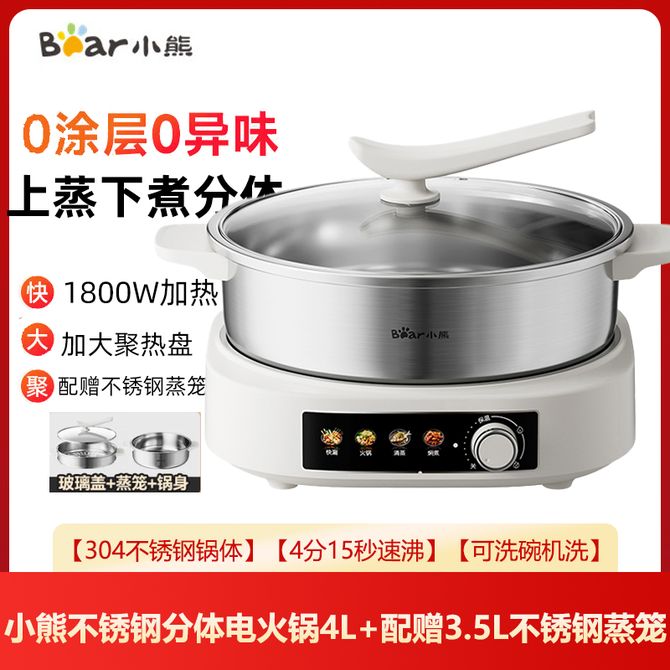 小熊/Bear 电火锅4升配送3.5L不锈钢蒸笼【健康0涂层】304不锈钢速沸电煮锅电蒸锅家用多功能上蒸下煮全钢锅分体式电热锅多用途锅 升级304不锈钢锅 0涂层更健康 耐磨耐用 可放进洗碗机 轻松清洁 兑换价格 11300 里程 会员卡别 终身白金卡 白金卡 金卡 银卡 普通卡 儿童卡 服务 由 广西桂福礼供应链管理有限公司 发货并提供售后 颜色: 其他 购买数量: 件 库存件 配送地址: 立即购买 加入购物车 成功添加到购物车 关闭 购物车共有 种商品 总金额为: