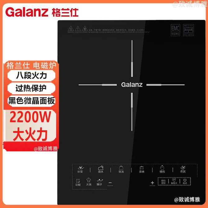 格兰仕/Galanz 电磁炉2200w大火力快速升温蒸煮煲炖炒一键操作八段火力家用电磁炉 八段火力 持久耐用 过热保护 自动断电 黑色微晶面板 2200W大火力 兑换价格 8700 里程 会员卡别 终身白金卡 白金卡 金卡 银卡 普通卡 儿童卡 服务 由 北京致诚博雅贸易有限公司 发货并提供售后 颜色: 其他 购买数量: 件 库存件 配送地址: 立即购买 加入购物车 成功添加到购物车 关闭 购物车共有 种商品 总金额为: