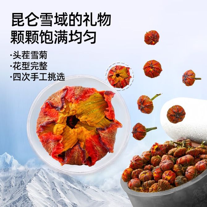 谷记老谷头/GUJILAOGUTOU 昆仑胎菊 90g(10罐) 小罐茶 礼盒装 老谷头昆仑雪菊新疆昆仑山菊花茶胎菊血菊送礼佳品礼品 【送礼礼盒】昆仑雪菊 兑换价格 7000 里程 会员卡别 终身白金卡 白金卡 金卡 银卡 普通卡 儿童卡 服务 由 啊兔食品专营店 发货并提供售后 规格: 盒装 购买数量: 件 库存件 配送地址: 立即购买 加入购物车 成功添加到购物车 关闭 购物车共有 种商品 总金额为: 组合销售 产品介绍 产品规格 售后服务 产品咨询 发现好货 艺福堂 茶叶绿茶 碧螺春 明前特级春茶100g 2600 里程 艺福堂 茶叶红茶 特级正山小种250g/罐 3500 里程 艺福堂 普洱小沱茶云南特产养生礼盒50颗/盒 2200 里程 美田 高原白茶龙珠云南清香鲜爽柔手工白茶42颗约250g 1100 里程 张一元 浓香茉莉花茶香茗50g飘香花茶 1300 里程