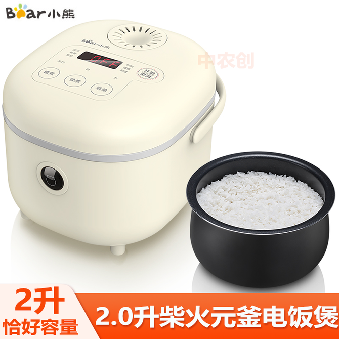 小熊/Bear 电饭煲 多功能迷你2升容量智能预约电饭锅 柴火元釜,24小时预约 兑换价格 7800 里程 会员卡别 终身白金卡 白金卡 金卡 银卡 普通卡 儿童卡 服务 由 中农创家电生活馆 发货并提供售后 颜色: 米色 购买数量: 件 库存件 配送地址: 立即购买 加入购物车 成功添加到购物车 关闭 购物车共有 种商品 总金额为: 组合销售 产品介绍 产品规格 售后服务 产品咨询 发现好货 苏泊尔(SUPOR) 电饭煲电饭锅4L大容量 不粘内胆4-6个人前置大屏面板24小时预约上蒸下煮多功能家用智能SF40FC0063 8300 里程 奥克斯/AUX 电饭煲3L电饭锅 2-3人小型预约智能电饭煲VK-309F2 5100 里程 苏泊尔(SUPOR) 迷你电饭煲家用电饭锅2-3人3L小容量蓝钻不粘内胆快煮饭功能智能预约小型多功能SF30FC0187 6100 里程 美菱/MELNG 电饭煲3L触控式预约定时MF-LC3005 4400 里程 苏泊尔(SUPOR) 煮饭煮粥智能预约多功能一锅多用小型微压电饭锅30FC0187 7200 里程