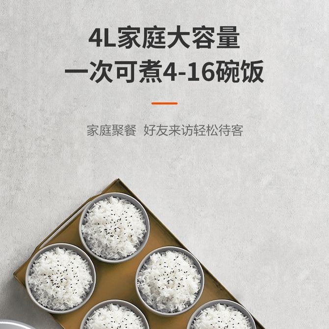 组合销售 产品介绍 产品规格 售后服务 产品咨询 发现好货 苏泊尔(SUPOR) 电饭煲电饭锅4L大容量 不粘内胆4-6个人前置大屏面板24小时预约上蒸下煮多功能家用智能SF40FC0063 7700 里程 美菱/MELNG 电饭煲3L触控式预约定时MF-LC3005 4400 里程 美的(Midea) 电饭煲 家用3L智能预约多功能电饭锅小型1-4人煮饭锅智能 白色 MB-FB30M161 7800 里程 康佳/Konka 迷你电饭煲小电饭锅2L容量智能温控12小时预约煮饭煮粥锅 4800 里程 美的/Midea 电饭煲电饭锅3-4个人家用4L大容量聚能釜金属机身大火力米饭锅【升级焖香阀】RE417 8700 里程
