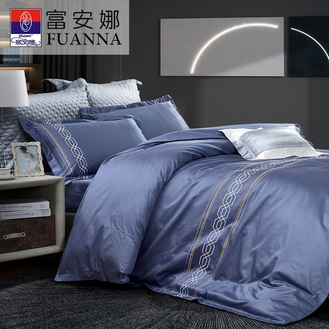 富安娜 60支长绒棉轻奢四件套精致刺绣缎纹面料亲肤丝滑四季通用 高端礼盒柏林之约203cm*229cm 精选长绒棉 时尚刺绣缎面 高支高密织法 色牢度高 耐用耐洗 层次丰富质感强 高端家居生活新主张 兑换价格 52200 里程 会员卡别 终身白金卡 白金卡 金卡 银卡 普通卡 儿童卡 服务 由 快乐集势家居日用专营店 发货并提供售后 床品套件数量: 四件套 被、单尺寸: 203*229cm 颜色: 蓝色 购买数量: 件 库存件 配送地址: 立即购买 加入购物车 成功添加到购物车 关闭 购物车共有 种商品 总金额为: 组合销售 产品介绍 产品规格 售后服务 产品咨询 发现好货 宜恋家纺 全棉四件套床上用品套件床单被套枕套礼品 爱巢 1.5-1.8米床适用 7200 里程 九洲鹿 纯棉四件套床品套件 青春气息 YJYH0017 8700 里程 南极人 亲肤纯色裸睡水洗磨毛床上用品四件套 果绿+曦月 N4XW086 5700 里程 洁丽雅 磨毛四件套加厚套件床单款小清新ins风床上用品双人被套床上用品床品四件套初夏-桔 被套200*230cm JDSJT019 4400 里程 紫韵家纺 “自由格调”时尚四件套 磨绒印花床品套件 被套床单枕套ZY-SD1151 7400 里程
