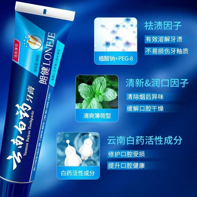 云南白药 牙膏减少烟渍亮白清新口气清洁口腔 清爽薄荷香型 朗健 180g*2支 (共360g) 祛烟渍亮洁牙齿 祛异味持续清 新缓解口腔问题 营养牙龈 强健牙周 兑换价格 4400 里程 会员卡别 终身白金卡 白金卡 金卡 银卡 普通卡 儿童卡 服务 由 广西北部湾网络科技有限公司 发货并提供售后 化妆品容量: 其他容量 购买数量: 件 库存件 配送地址: 立即购买 加入购物车 成功添加到购物车 关闭 购物车共有 种商品 总金额为: