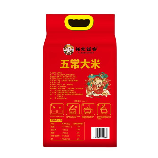 邻家饭香 二级产区五常大米 2.5kg*1袋装 长粒形米 五常大米 稻花香2号 东北大米5kg/袋 国家地理标志产品 GB/T19266 二级产区五常大米 2.5kg*1袋 1袋装 兑换价格 1500 里程 会员卡别 终身白金卡 白金卡 金卡 银卡 普通卡 儿童卡 服务 由 悟空食品甄选馆 发货并提供售后 规格: 袋装 购买数量: 件 库存件 配送地址: 立即购买 加入购物车 成功添加到购物车 关闭 购物车共有 种商品 总金额为: 组合销售 产品介绍 产品规格 售后服务 产品咨询 发现好货 金熊 泰国茉莉 香米 1kg 泰国原料进口 1300 里程 十月稻田当季新米辽河长粒香大米 5kg 东北大米 香米 粳米 十斤 2100 里程 源头说 五常有机稻花香新米 东北大米 2.5kg(双重防伪认证) 4200 里程 十月稻田 长粒香大米2.5kg 东北大米5斤 东北香米 1300 里程 裕道府东北大米好味稻香米 5kg 2000 里程
