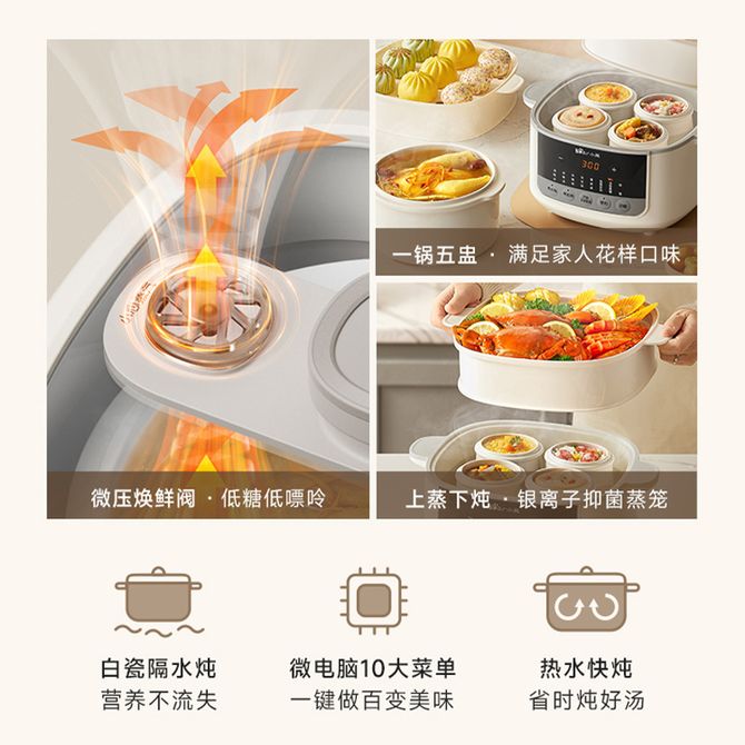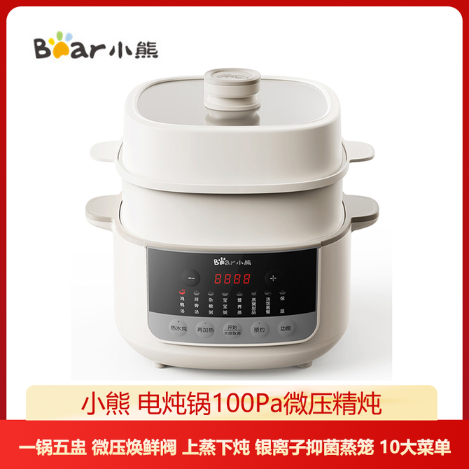 小熊/Bear 电炖锅 100Pa微压精炖上蒸下炖·银离子抑菌蒸笼煮粥炖汤锅 一锅五盅 微压焕鲜阀 上蒸下炖 银离子抑菌蒸笼 微电脑10大菜单 兑换价格 10400 里程 会员卡别 终身白金卡 白金卡 金卡 银卡 普通卡 儿童卡 服务 由 中农创家电生活馆 发货并提供售后 颜色: 其他 购买数量: 件 库存件 配送地址: 立即购买 加入购物车 成功添加到购物车 关闭 购物车共有 种商品 总金额为: