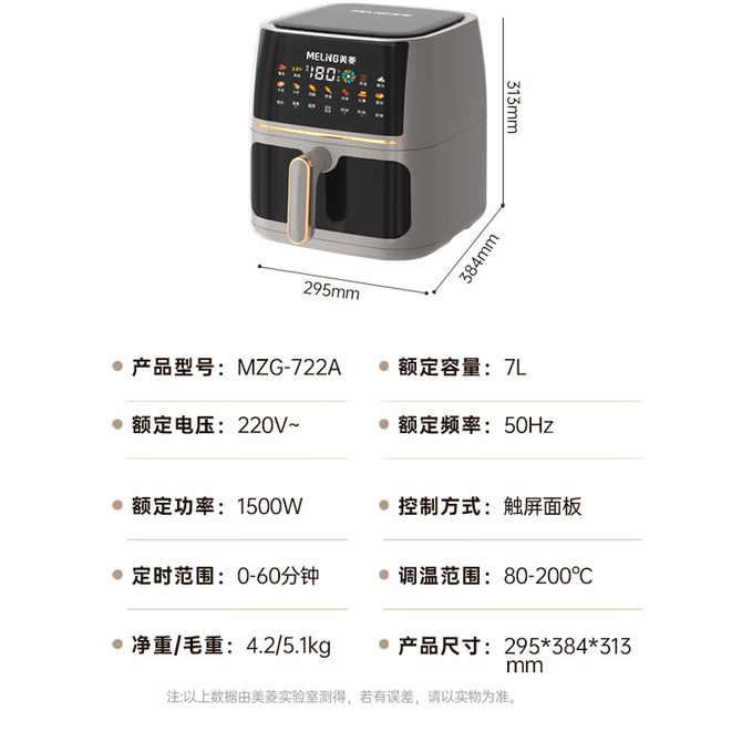 美菱/MELNG 空气炸锅MZG-722A 7L大容量免翻面大屏操作显示屏不粘烤锅 电子款 免预热 可视窗口 免翻面底盘 兑换价格 8700 里程 会员卡别 终身白金卡 白金卡 金卡 银卡 普通卡 儿童卡 服务 由 诚最电器精品店 发货并提供售后 颜色: 其他 购买数量: 件 库存件 配送地址: 立即购买 加入购物车 成功添加到购物车 关闭 购物车共有 种商品 总金额为: