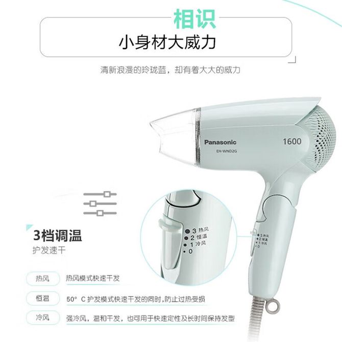 松下/Panasonic EH-WND2GA405 电吹风机 家用高速冷热大功率吹风筒 恒温速干护发便携折叠 薄荷绿 可折叠 强冷风 护发模式 1600W大功率 兑换价格 4800 里程 会员卡别 终身白金卡 白金卡 金卡 银卡 普通卡 儿童卡 服务 由 存悦商贸 发货并提供售后 颜色: 浅绿色 购买数量: 件 库存件 配送地址: 立即购买 加入购物车 成功添加到购物车 关闭 购物车共有 种商品 总金额为:
