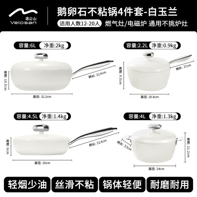 温仑山/VELOSAN 鹅卵石炒锅具套装白玉兰炒煎汤奶四件套 采用悬浮不粘技术 炒菜丝滑 炒锅32cm+煎锅26cm+汤锅24cm+奶锅20cm 兑换价格 39000 里程 会员卡别 终身白金卡 白金卡 金卡 银卡 普通卡 儿童卡 服务 由 人人余厨具专营店 发货并提供售后 颜色: 白色 购买数量: 件 库存件 配送地址: 立即购买 加入购物车 成功添加到购物车 关闭 购物车共有 种商品 总金额为: