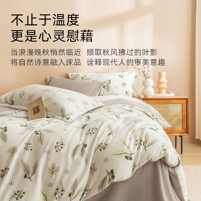 京东京造 220g牛奶绒四件套 A类秋冬加厚高克重法兰绒保暖双人床单枕套被套 墨染秋枫 发货规格:200*230cm和220*240cm为被套尺寸 国标A类 活性印染 加厚保暖 科技抗静电 兑换价格 16000-17000 里程 会员卡别 终身白金卡 白金卡 金卡 银卡 普通卡 儿童卡 服务 由 上海槿沅贸易有限公司 发货并提供售后 床品套件数量: 四件套 被、单尺寸: 200*230cm 220*240cm 颜色: 其他 购买数量: 件 库存件 配送地址: 立即购买 加入购物车 成功添加到购物车 关闭 购物车共有 种商品 总金额为: 组合销售 产品介绍 产品规格 售后服务 产品咨询 发现好货 宜恋家纺 全棉四件套床上用品套件床单被套枕套礼品 爱巢 1.5-1.8米床适用 7200 里程 九洲鹿 纯棉四件套床品套件 青春气息 YJYH0017 8700 里程 南极人 亲肤纯色裸睡水洗磨毛床上用品四件套 果绿+曦月 N4XW086 5700 里程 洁丽雅 磨毛四件套加厚套件床单款小清新ins风床上用品双人被套床上用品床品四件套初夏-桔 被套200*230cm JDSJT019 4400 里程 紫韵家纺 “自由格调”时尚四件套 磨绒印花床品套件 被套床单枕套ZY-SD1151 7400 里程