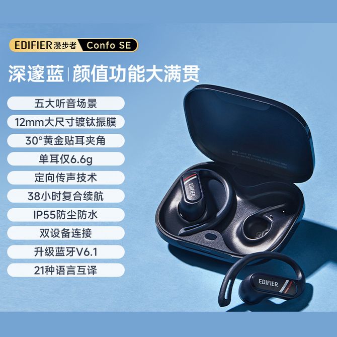 漫步者/EDIFIER 开放式真无线蓝牙耳机 AI高清通话HiFi音质耳麦 即时翻译耳塞Comfo-SE深蓝 镀钛动圈HiFi音质,动态低频补偿,稳挂于耳,AI通话防风降噪,蓝牙6.1,超长续航,游戏低延迟,多EQ音效,IP55防尘防水,APP多语种翻译 兑换价格 11500 里程 会员卡别 终身白金卡 白金卡 金卡 银卡 普通卡 儿童卡 服务 由 智科精品 发货并提供售后 颜色: 深蓝色 购买数量: 件 库存件 配送地址: 立即购买 加入购物车 成功添加到购物车 关闭 购物车共有 种商品 总金额为:
