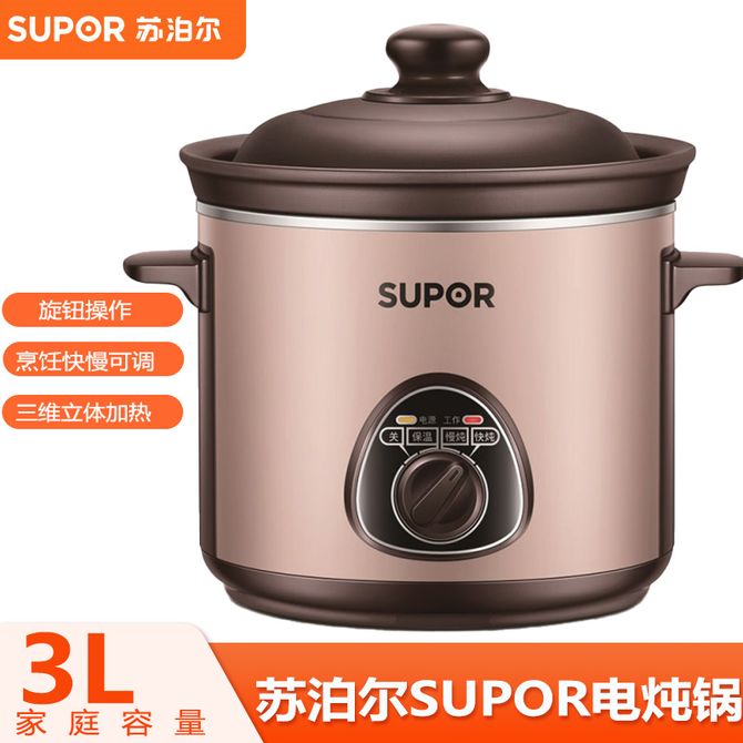 苏泊尔(SUPOR) 电炖锅3L 家用煲汤锅炖汤锅熬粥锅慢炖煲汤土陶胆 3L黄金容量 文武火精炖慢煲 立体三维加热 优质原矿土陶 兑换价格 7800 里程 会员卡别 终身白金卡 白金卡 金卡 银卡 普通卡 儿童卡 服务 由 中农创家电生活馆 发货并提供售后 颜色: 其他 购买数量: 件 库存件 配送地址: 立即购买 加入购物车 成功添加到购物车 关闭 购物车共有 种商品 总金额为:
